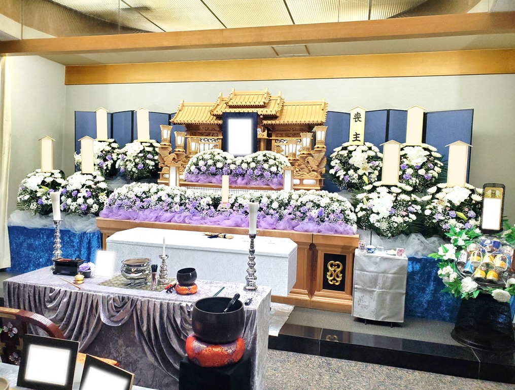 大和斎場には4つの葬儀式場があり、いずれの式場にも立派な白木祭壇が常設されています。