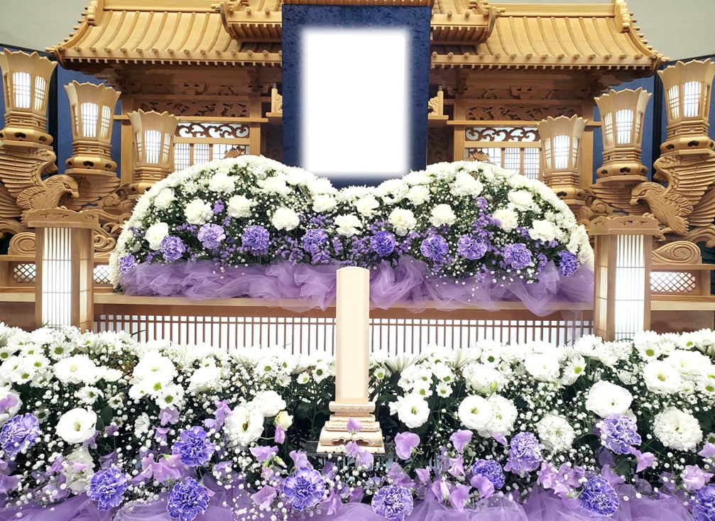 この度は、この白木祭壇の上に生花をたっぷりとあしらい、華やかさとあたたかみのある祭壇に仕上げていただきました。
