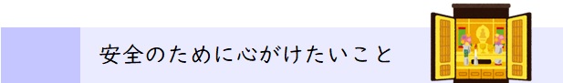ご自宅や法要の際にろうそくを灯すときは、火のそばに紙や布を置かないようにし、離れるときや就寝前には必ず火を消すようにしましょう。