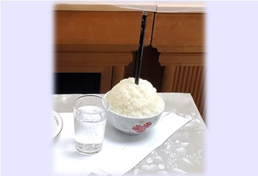 「一膳飯」とは、その名の通り一膳だけお供えするご飯のことで、中央にお箸をまっすぐ立てるのが特徴です。